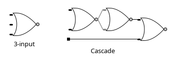 | XNOR | 000|1 | 1 if an even number of inputs are 1 | ![]() |